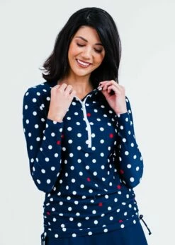 Beat the heat and the sun with the Adele Swim Top! This stylish crew neck with adjustable side ruching is perfect for the pool, beach, or running around on a sunny day – did we mention it also has UPF 50+ sun protection?