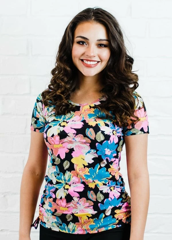 Beat the heat and the sun with the Adele Swim Top! This stylish crew neck with adjustable side ruching is perfect for the pool, beach, or running around on a sunny day – did we mention it also has UPF 50+ sun protection?