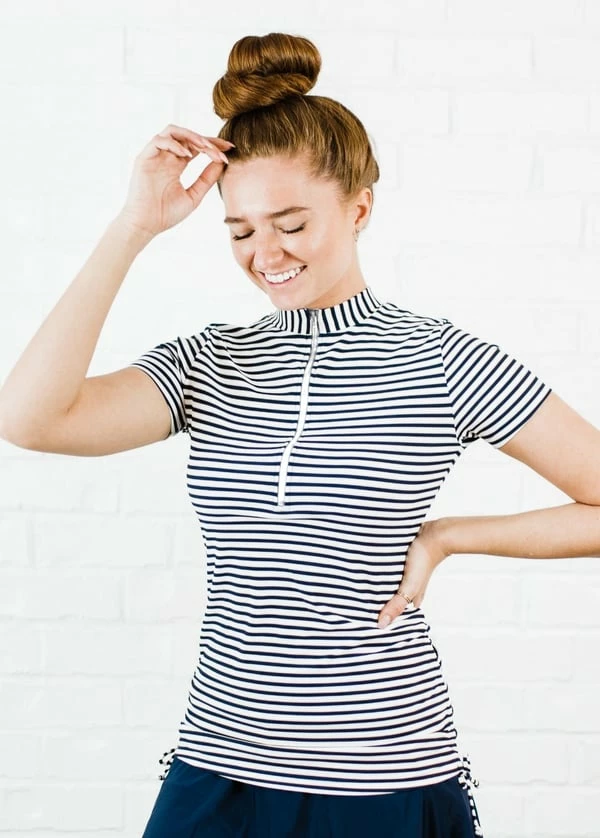 The Zippered Adele Swim Top will turn heads no matter where it’s worn. The front zip feature and side ruching allow for a custom, adjustable fit which is ultra flattering for every body. Sold as top only. Pair with your favorite swim bottom to complete the look.