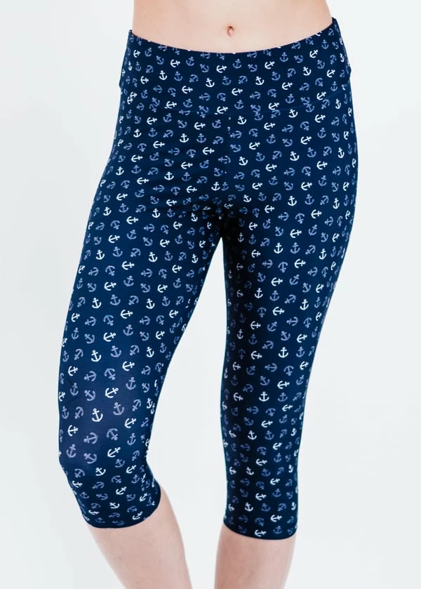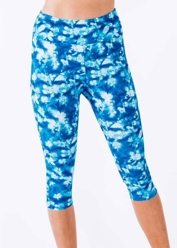 Capri length swim leggings are the perfect go to swim bottom! They are high-waisted and have UPF 50+ sun protection. Perfect for your sporty look while enjoying the sun on a warm day.