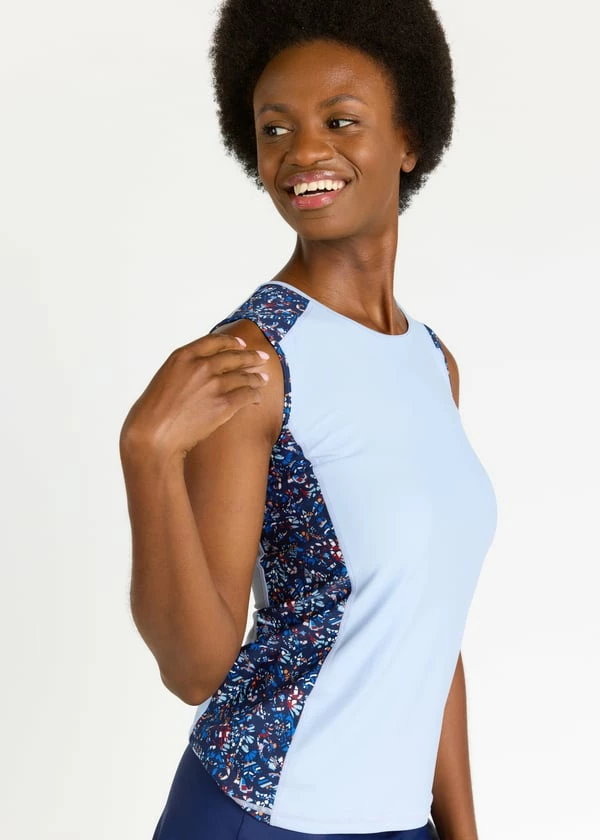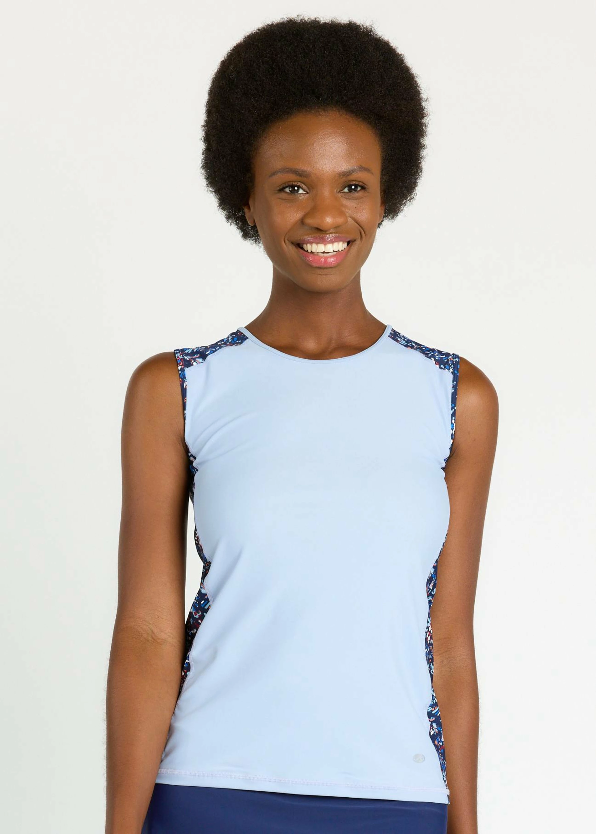 Comfort, style, and sun protection meet seamlessly with the Loose Fit Maya Swim Top. A round neckline, relaxed fit, and contrasting side panels create a slimming effect. Sold as top only. Pair with your favorite swim bottom to complete the look.