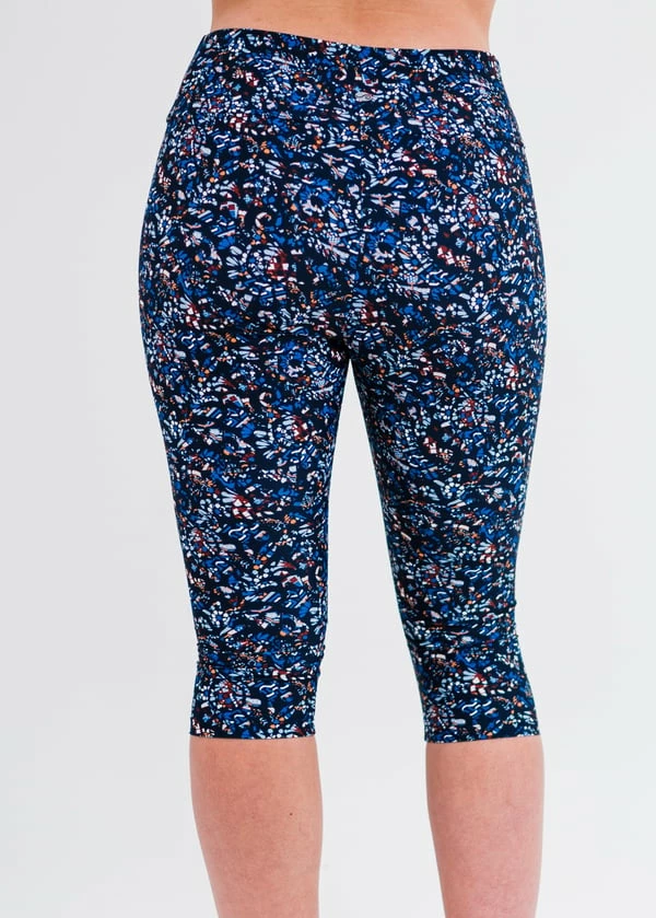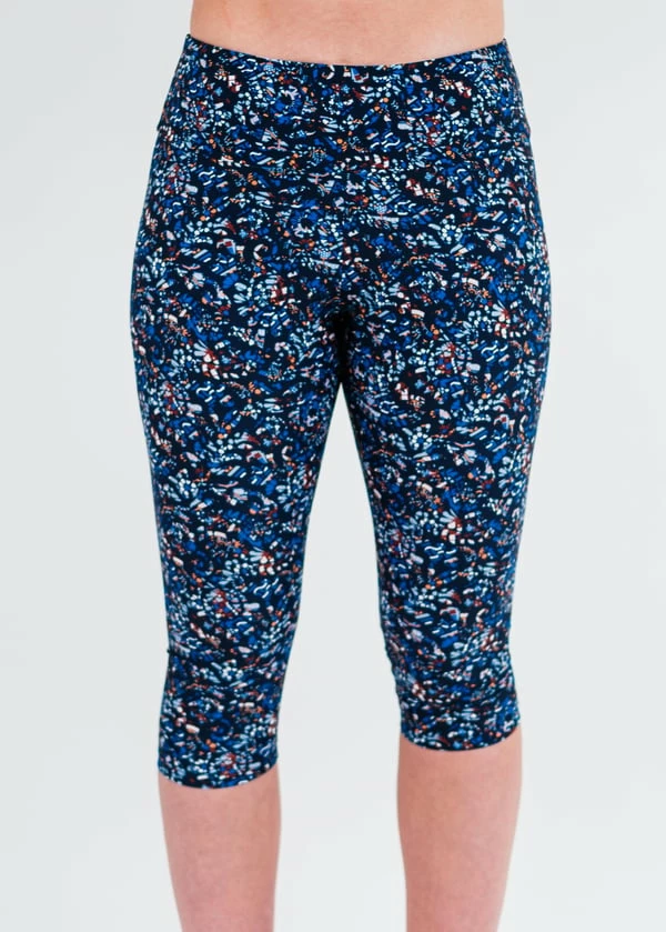 Capri length swim leggings are the perfect go to swim bottom! They are high-waisted and have UPF 50+ sun protection. Perfect for your sporty look while enjoying the sun on a warm day.