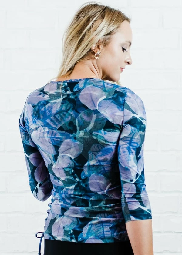 - Side ruching creates a flattering cinched look