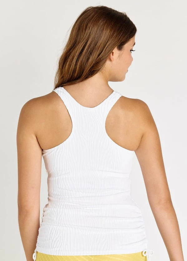 The Maya Swim Top is perfect for a sunny day. The round neckline, racerback cut and built-in bra offer stylish comfort and support while the adjustable side ruching gives you a better fit. Sold as top only. Pair with your favorite swim bottom to complete the look.