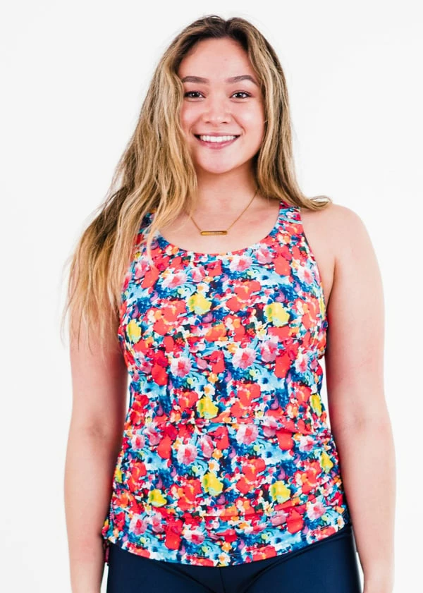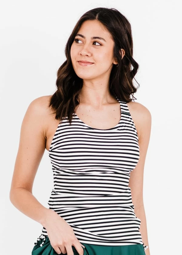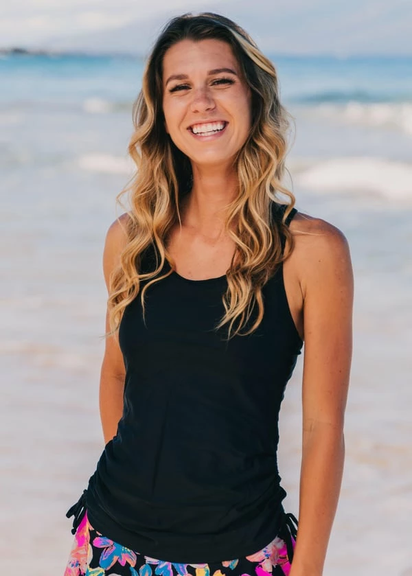 Discover your go-to swimwear essential: this tankini combines comfort, style, and versatility, offering the perfect balance of coverage and confidence for any activity.