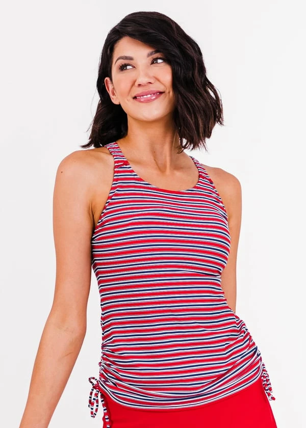 - Racerback design adds a modern, chic detail to the tankini, giving it a sporty look.