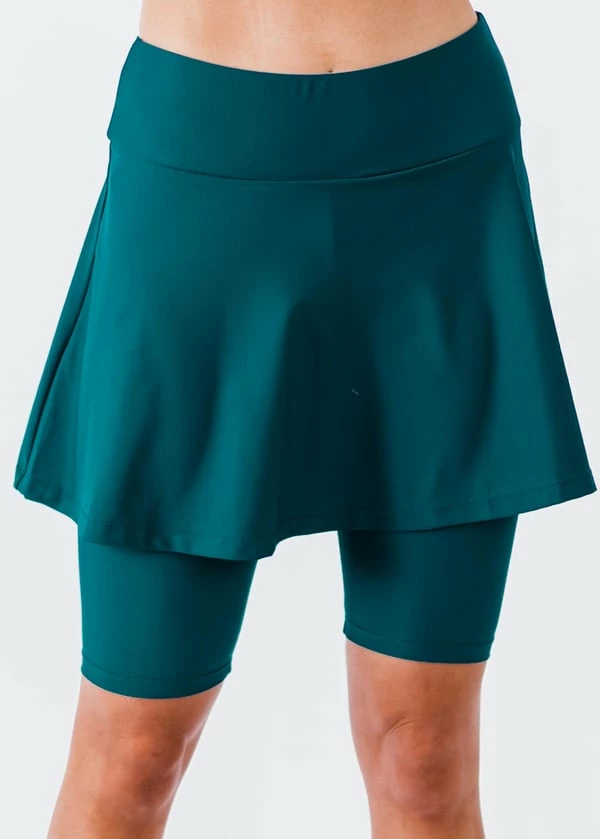 The Midi Swim Skort is flattering on all body types thanks to its high waist design and mid-thigh length skirt. Complete with a wide waistband for a slimming effect and attached leggings hit you right above the knee for added coverage. Get this bottom with the perfect top to complete the set. Shop sets
