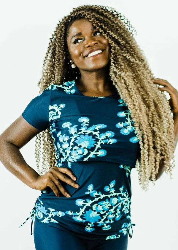 - Built-in bra with removable cup and Two layers of fabric for easy nursing and extra coverage