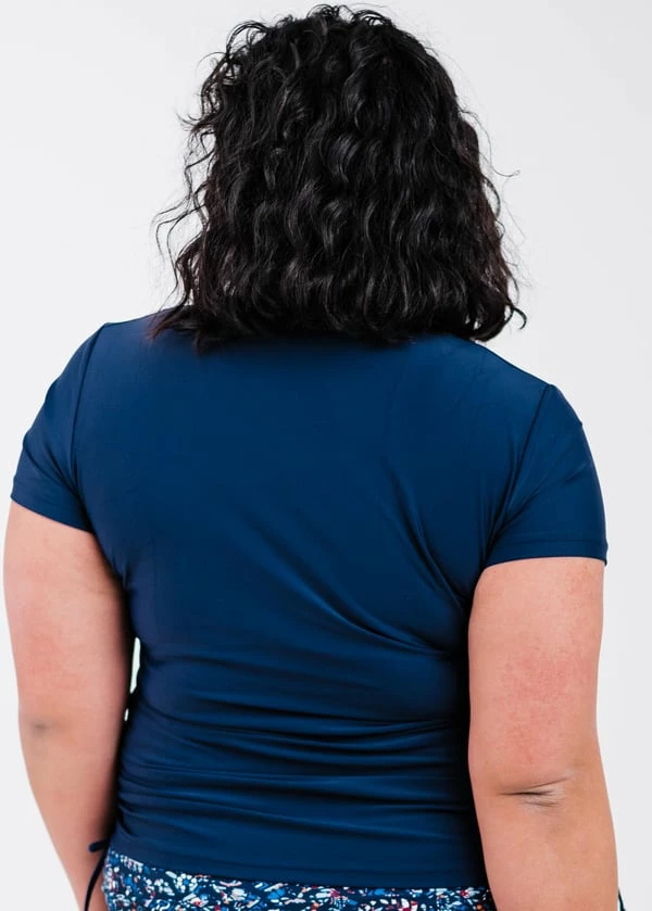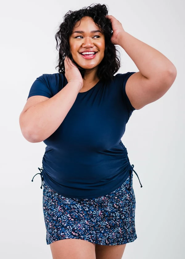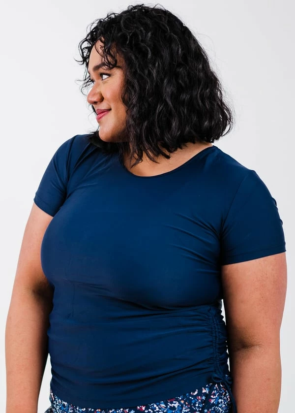 Beat the heat and the sun with the Adele Swim Top! This stylish crew neck with adjustable side ruching is perfect for the pool, beach, or running around on a sunny day – did we mention it also has UPF 50+ sun protection?