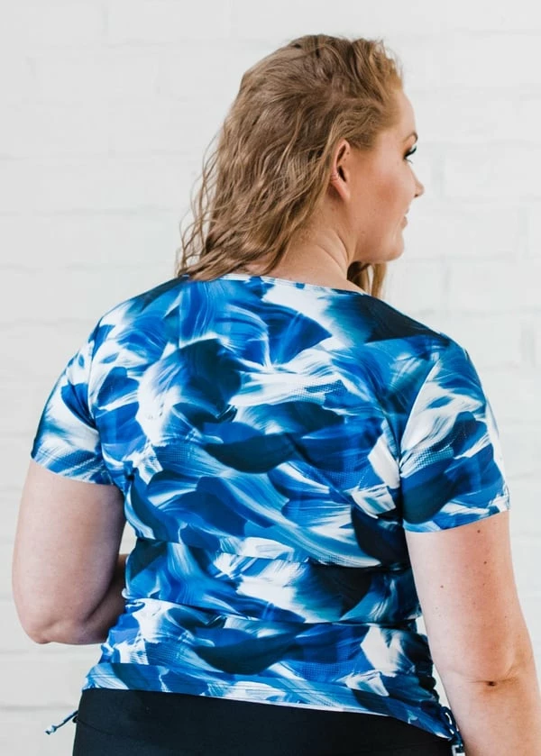 Beat the heat and the sun with the Adele Swim Top! This stylish crew neck with adjustable side ruching is perfect for the pool, beach, or running around on a sunny day – did we mention it also has UPF 50+ sun protection?