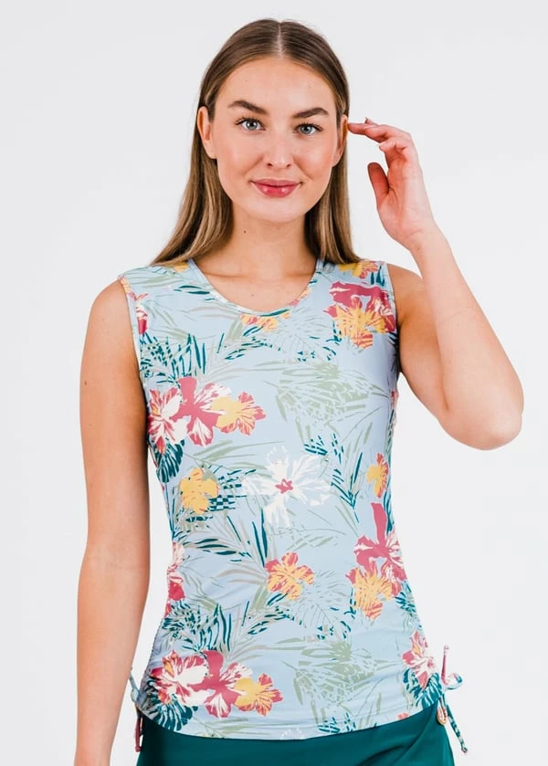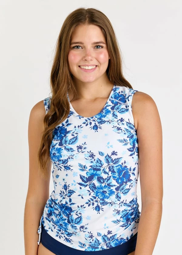 This tankini swim top isn’t your typical tankini. This new design features a higher neckline and closed back to keep you comfortable and covered. And the best part? It has a built-in bra!