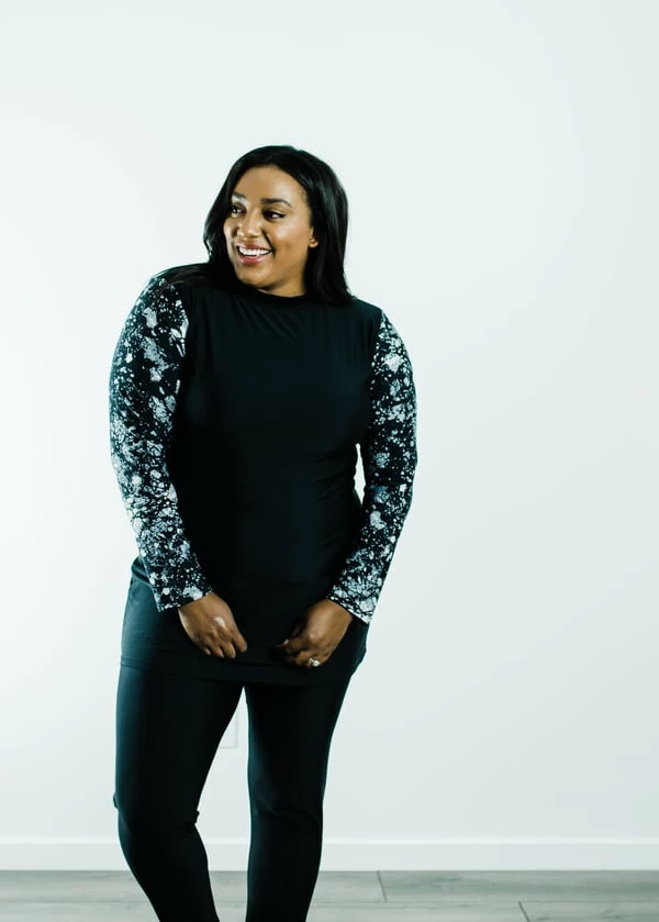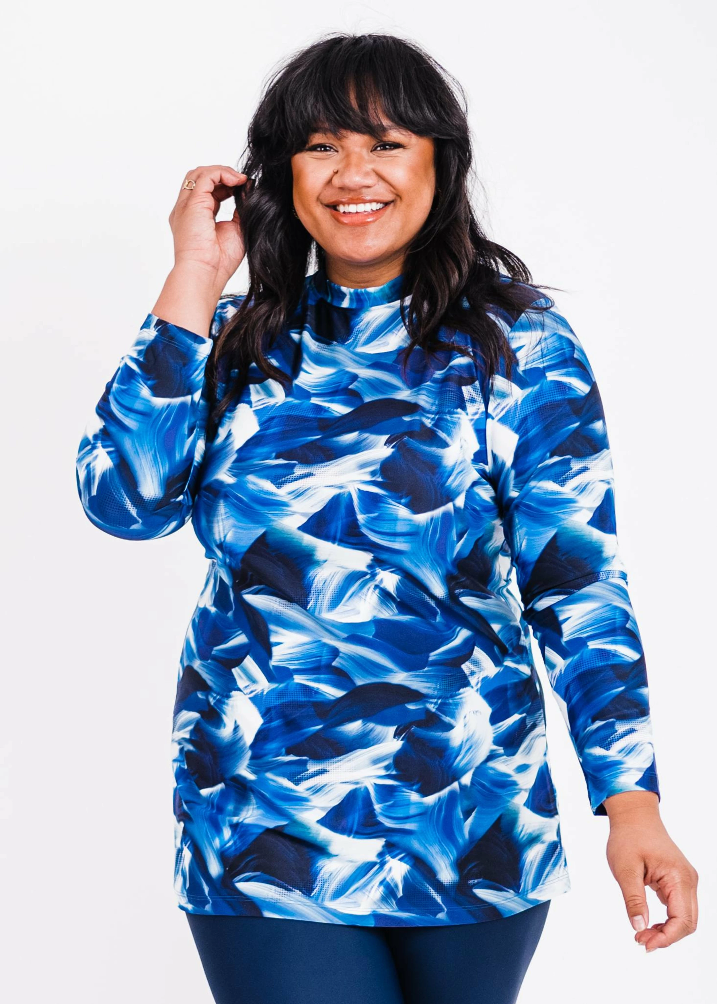 The Jenna Swim Tunic is a long-sleeved swim tunic that features a raised collar and a slightly looser fit for easy and comfortable wear all day long! This tunic is long enough to cover the rear and is perfect for all kinds of activities! Pair it with your favorite swim bottoms to complete the look.