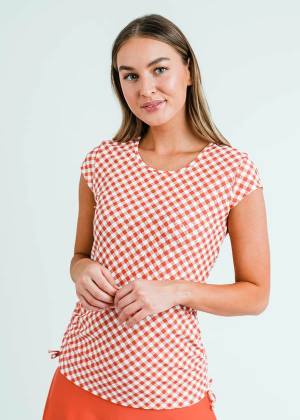 This cap sleeved swim top with perfect for protecting your shoulders from the sun on long summer days. This top also features drawstrings along the side to help you achieve a better fit.