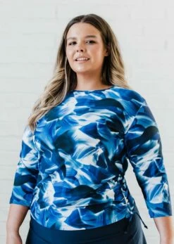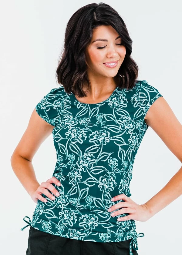 This cap sleeved swim top with perfect for protecting your shoulders from the sun on long summer days. This top also features drawstrings along the side to help you achieve a better fit.