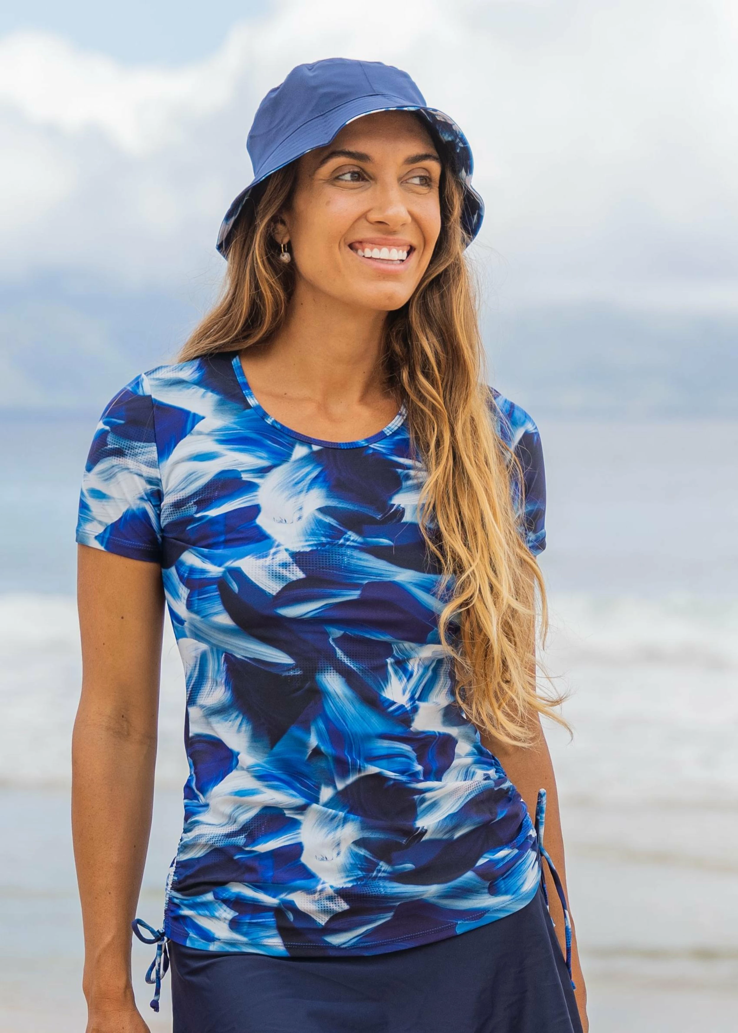 Beat the heat and the sun with the Adele Swim Top! This stylish crew neck with adjustable side ruching is perfect for the pool, beach, or running around on a sunny day – did we mention it also has UPF 50+ sun protection.
